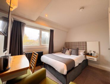 Our Standard Double room, featuring an en-suite bathroom with a bath and/or power shower & complimentary toiletries.