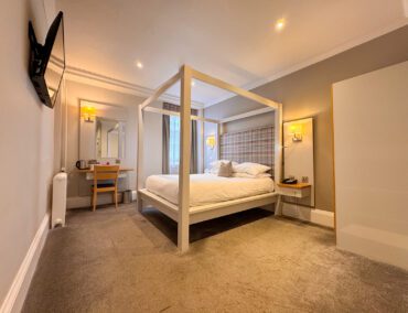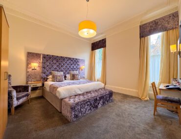 Our Deluxe Double room located within Montpellier House and featuring an en-suite bathroom with a spacious power shower & toiletries.