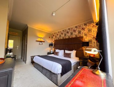 Our Junior Suite, featuring a king-size double bedroom, television lounge with double sofa bed, an en-suite bathroom & complimentary toiletries.